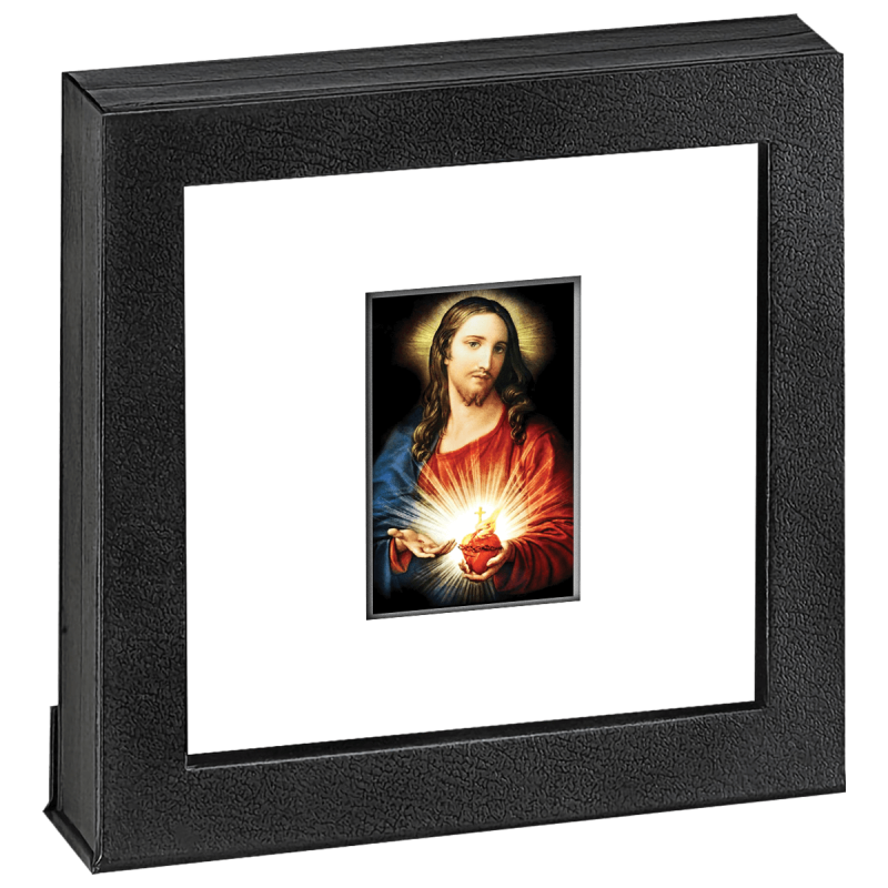 Srebrna sztabka kolekcjonerska wybita w Mennicy Polskiej z wizerunkiem obrazu Najświętsze Serce Pana Jezusa autorstwa Pompeo Batoni.