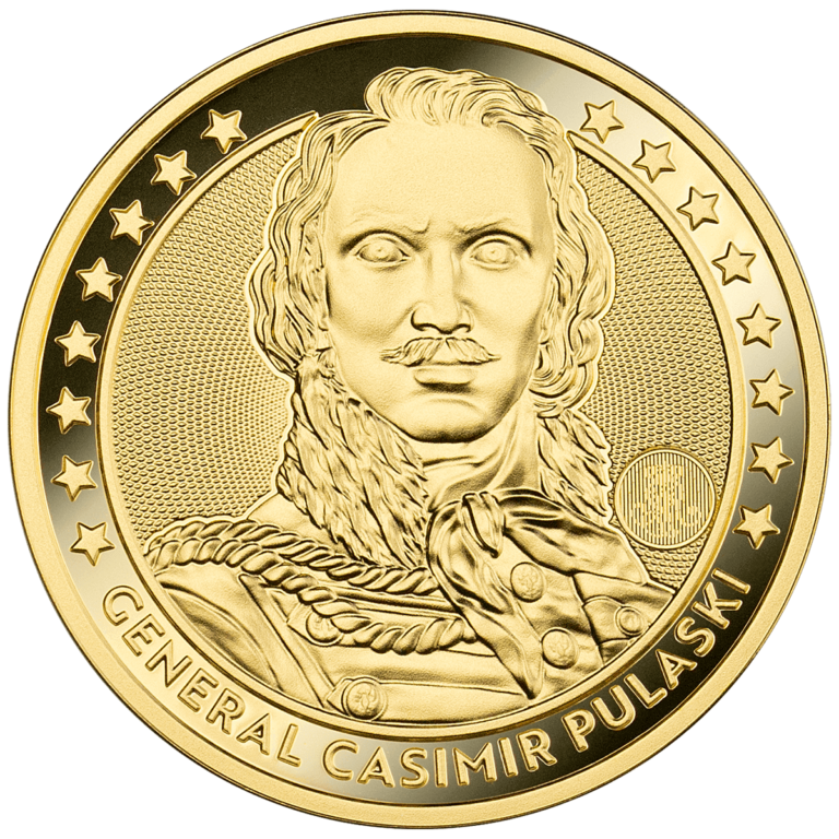 Zainwestuj w kluczową postać w polskiej i amerykańskiej historii. Przedstawiamy złoty dukat z wizerunkiem generała Kazimierza Pułaskiego – szanowanego patrioty ważnego dla rewolucji amerykańskiej i polskiej niepodległości.